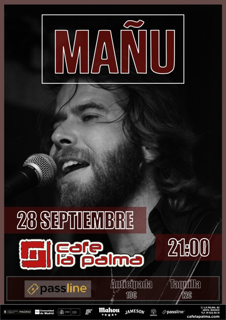 MAÑU es un músico con influencias pop rock que estará presentando varias de sus canciones, la mayoría aún inéditas, por primera vez en CAFE LA PALMA.