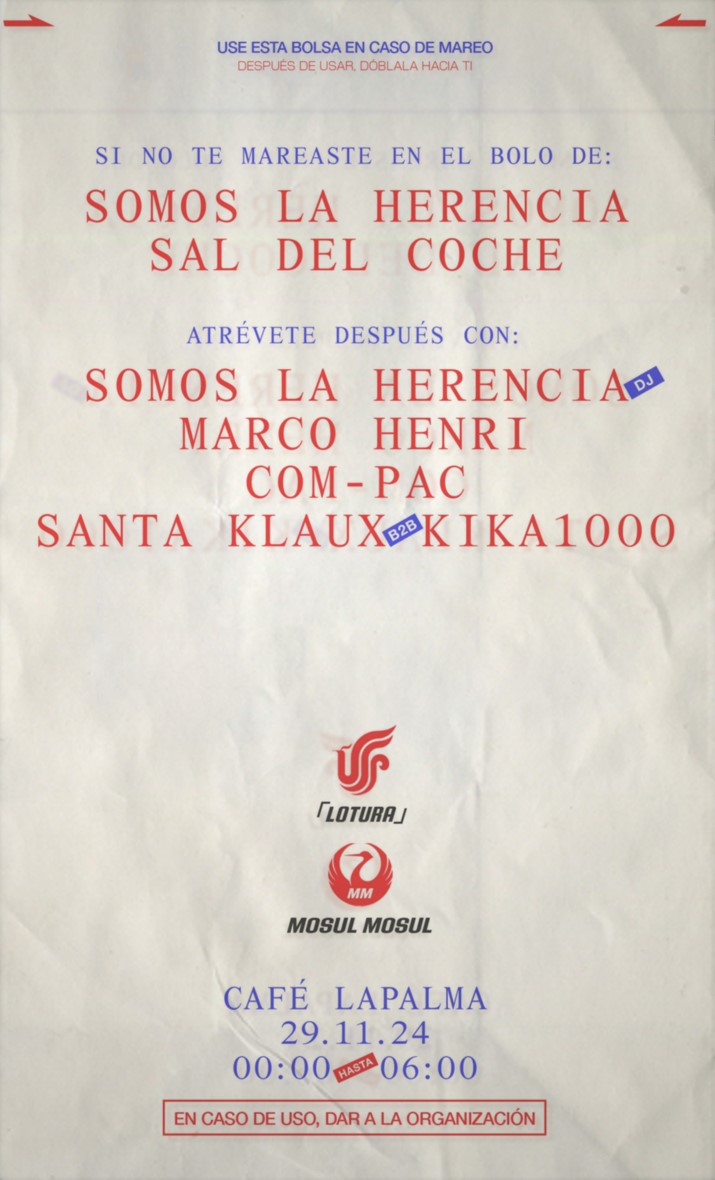 Si no te mareaste en el concierto de Somos La Herencia y Sal del Coche puedes probar tu suerte en la post-fiesta. Mosul Mosul y Lotura unen sus fuerzas en CAFE LA PALMA para traerte lo mejor de cada casa y probablemente -por qué no decirlo- de la península.