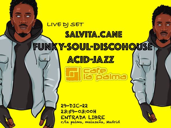 Salvita.Cane es un Dj residente en Madrid procedente de Tenerife. Sus sesiones son de las más variopintas y eclécticas, mezclando desde soul y funky hasta Rockn’Roll, `coronando sus sets con el mejor Disco-House para que te vayas a la cama con el cuerpo alegre.