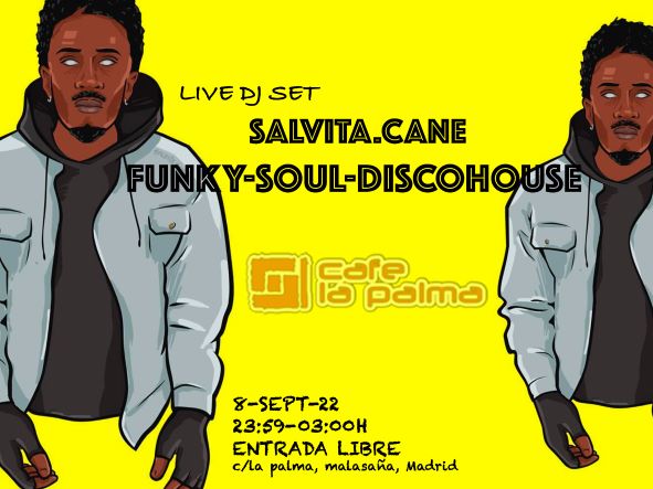 Salvita.Cane es un Dj residente en Madrid procedente de Tenerife. Sus sesiones son de las más variopintas y eclécticas, mezclando desde soul y funky hasta Rockn’Roll, `coronando sus sets con el mejor Disco-House para que te vayas a la cama con el cuerpo alegre.