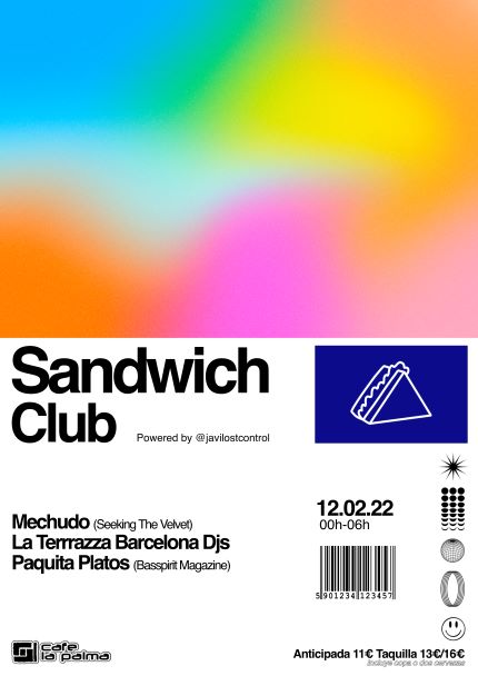 Sandwich Club es un evento mensual de música electrónica que se celebra en CAFE LA PALMA, creado por Mechudo y propulsado por JAVILOSTCONTROL.