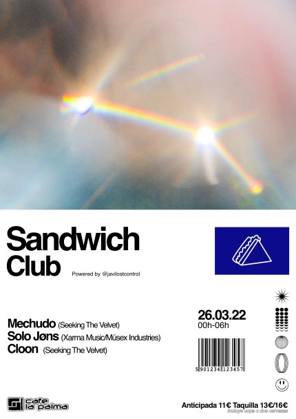 Sandwich Club es un evento mensual de música electrónica que se celebra en CAFE LA PALMA, creado por Mechudo y propulsado por JAVILOSTCONTROL.