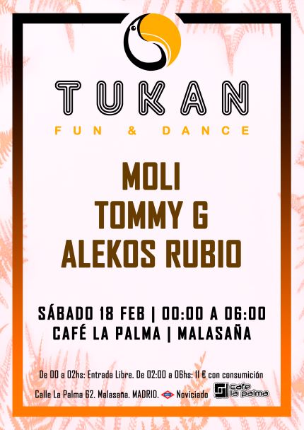 TUKAN son risas, familiaridad, frescura, alegría, novedades y recuerdos, son colores y sabores, dulce con un punto de picante: Fun & Dance con Moli, Alekos Rubio y Tommy G en cabina.